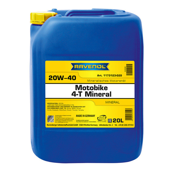 RAVENOL Motobike 4-T Mineral 20W-40 is suitable as an engine oil for all motorbikes in case the specification SAE 20W-40 JASO MA/MA2 is requested.