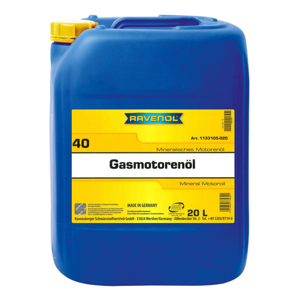 RAVENOL Gasmotorenoel SAE 40 is gas engine oil suitable for the lubrication of four stroke gas engines, when gases are used with lower sulphur contents.