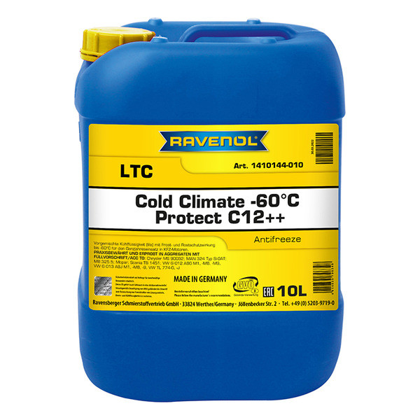 RAVENOL LTC COLD CLIMATE -60°C – oldindan suv bilan aralashtirilgan, tayyor sovituvchi suyuqlik bo‘lib, yengil avtomobillar, yo‘ltanlamas texnika, mikroavtobuslar va yuk avtomobillari dvigatellari sovitish tizimlarida yil davomida qo‘llaniladi, ayniqsa ekstremal past haroratli hududlarda. Yozda ham korroziyaga qarshi himoya va sovitish tizimini qizib ketishdan saqlash funksiyalarini samarali bajaradi.