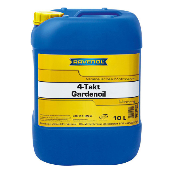 RAVENOL Gardenoil 4-Takt – Germaniyada ishlab chiqarilgan, 4 taktli maysazor o‘rish mashinalari dvigatellari uchun mineral asosli motor moyi. Maxsus tanlangan qo‘shimcha modda kompleksi aşinaga va korroziyaga yuqori darajada himoya ta’minlaydi. Oddiy ish haroratlarida qo‘llash tavsiya etiladi. Doimiy yopishqoqlik va siljish yo‘qotishlarining oldini oladi.